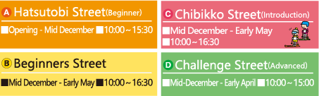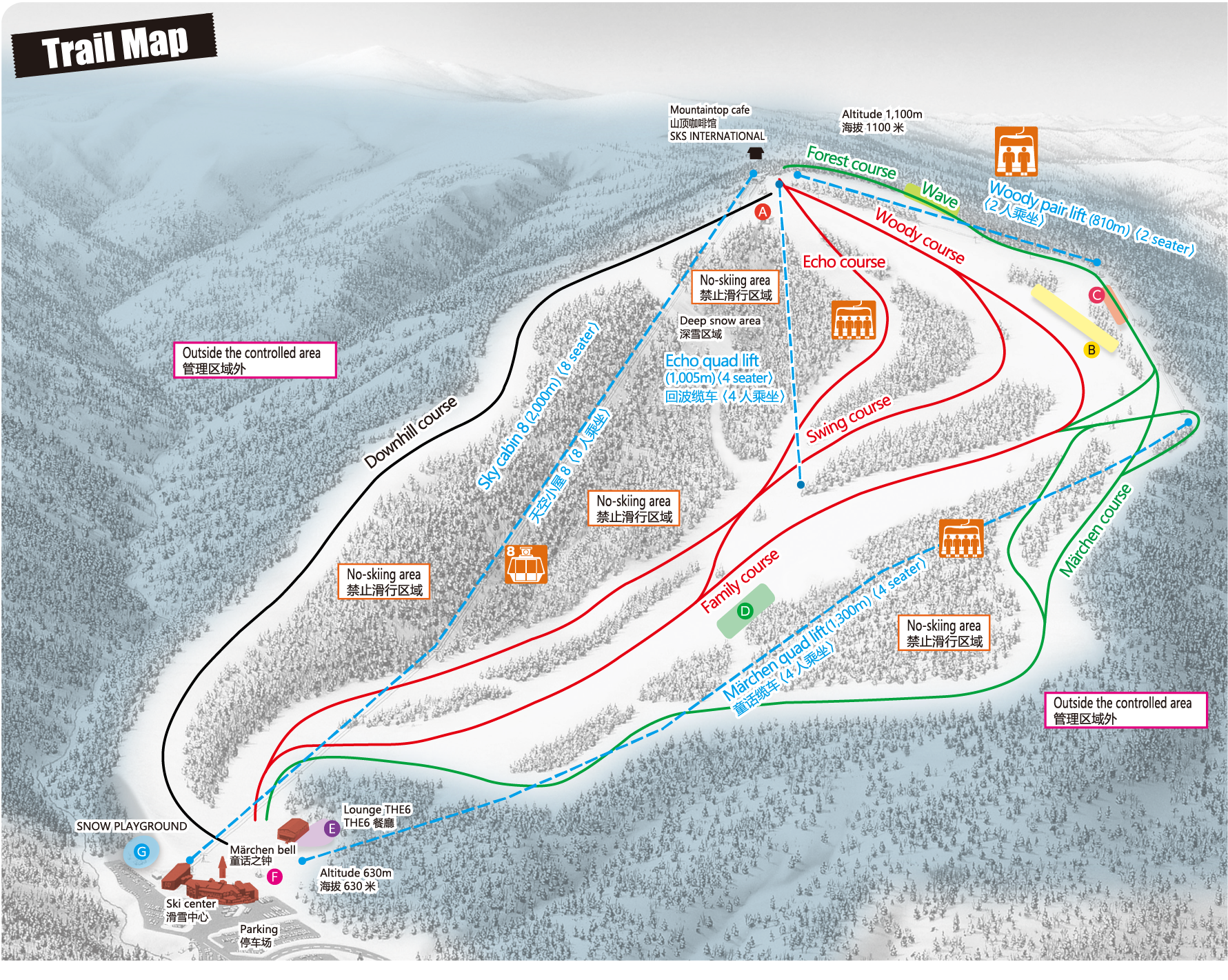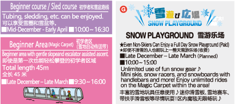 ※请用符合技术的滑行方法享受。※滑雪场内的项目等,根据天气以及积雪量等各种情况,也有期间・场所的变更和不能利用的情况。※滑雪场的禁止滑行区域、管理区域外的搜索、救助所需的费用全部由客人承担。
