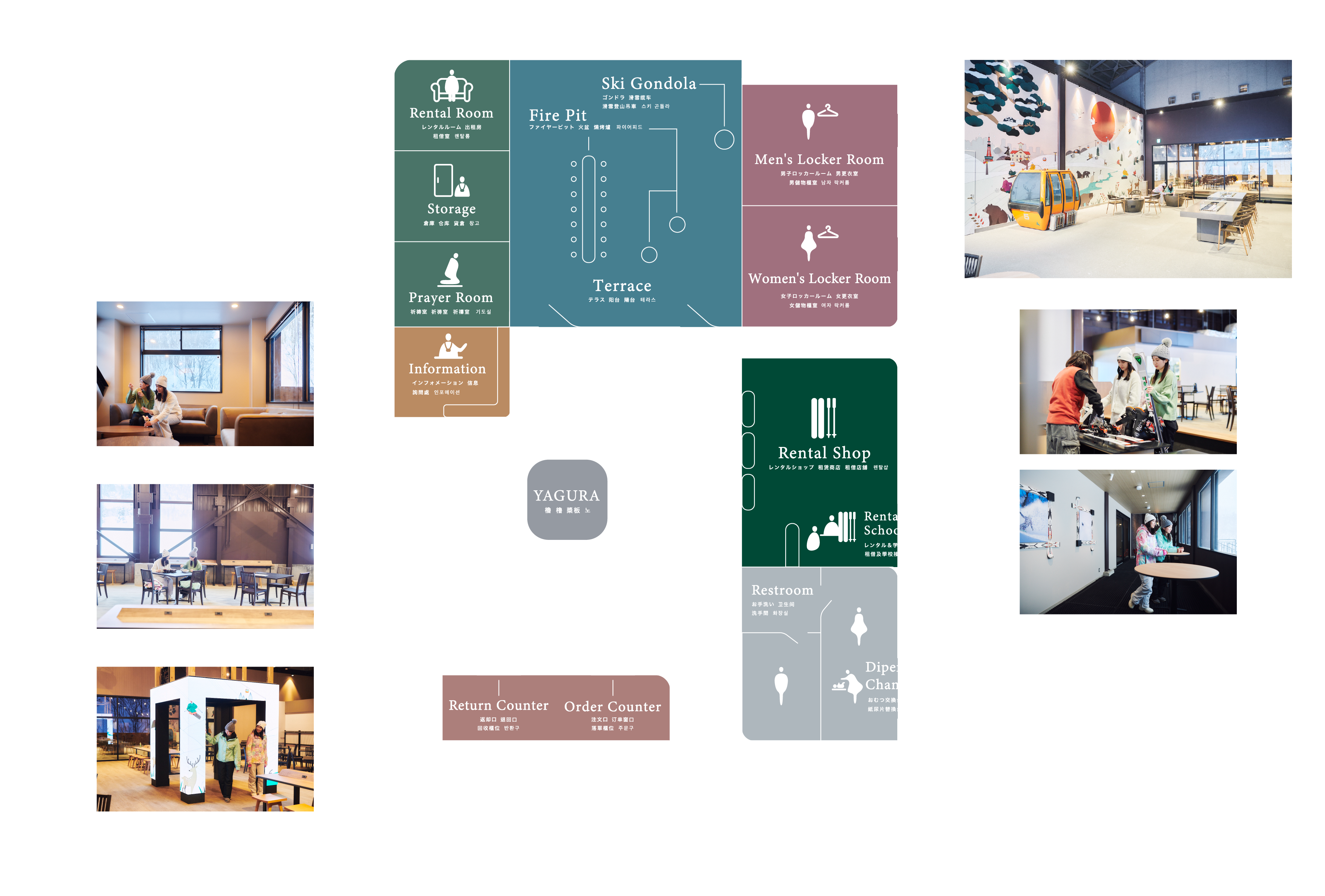 This building served as the station of a six-seater gondola that started operation in 1984 and remained in service until 2020. We affectionally called this gondola “6 (Six),” a number inspired by the hexagonal shape of snow crystals, one of our most cherished natural resources. By adding to the “6” the concept of a space where people from all walks of life can relax and socialize, we have reimagined it as a new venue, Lounge THE 6, and opened it to the public.