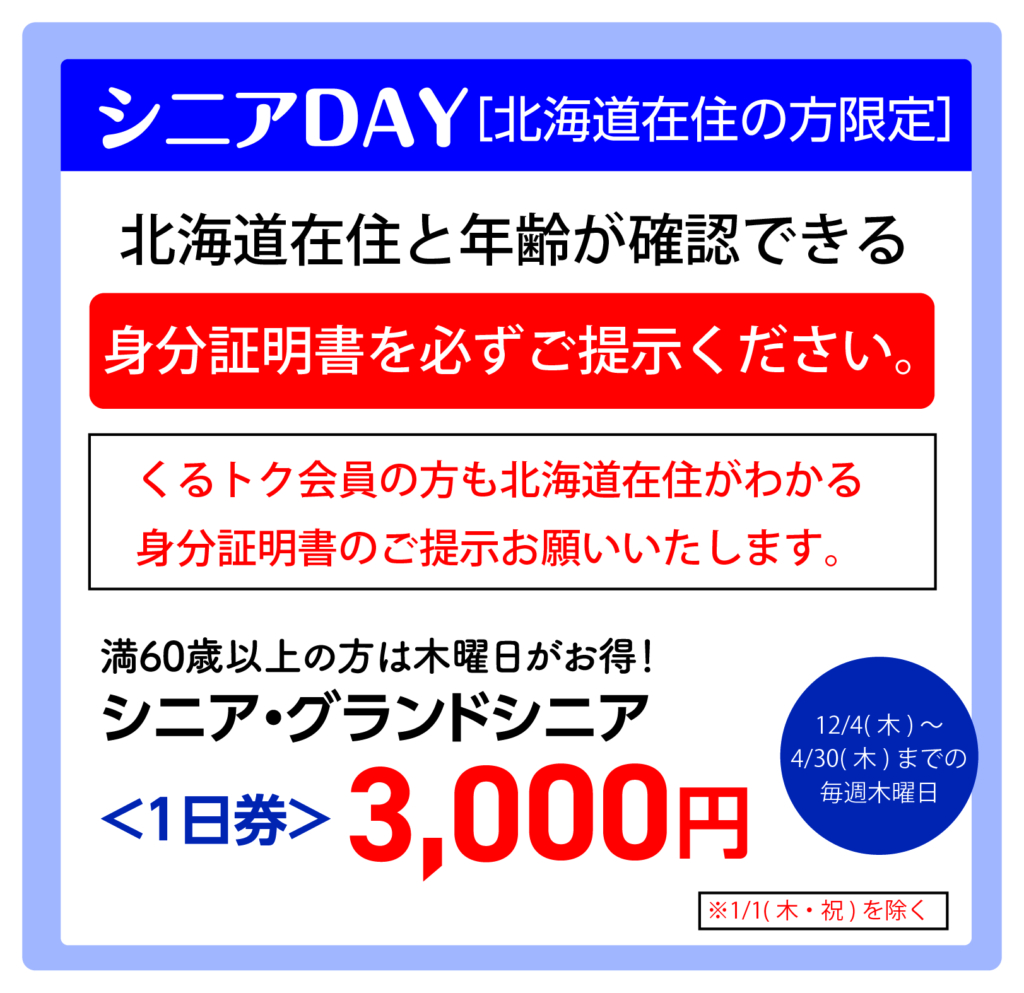 ※シニアDAYのWEB販売、セイコーマート販売は行っておりません。