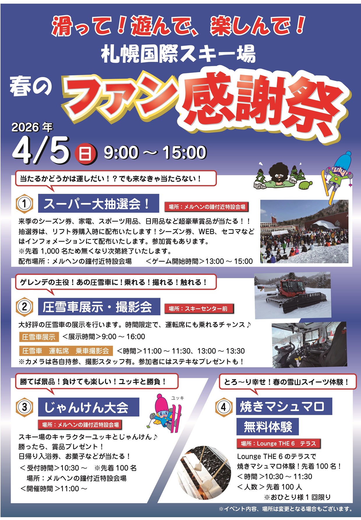 札幌国際スキー場 春のファン感謝祭、4/5(日)に開催!