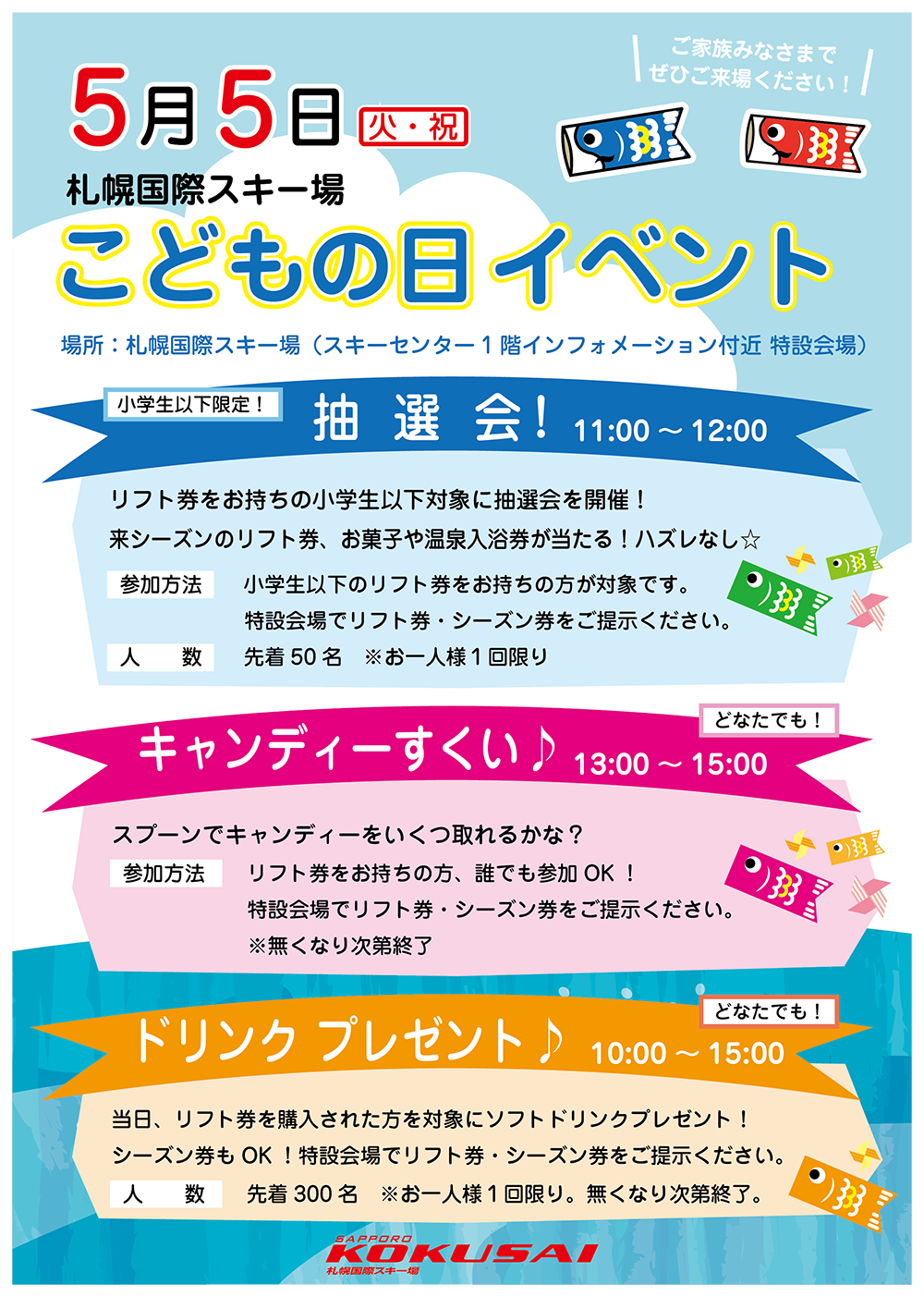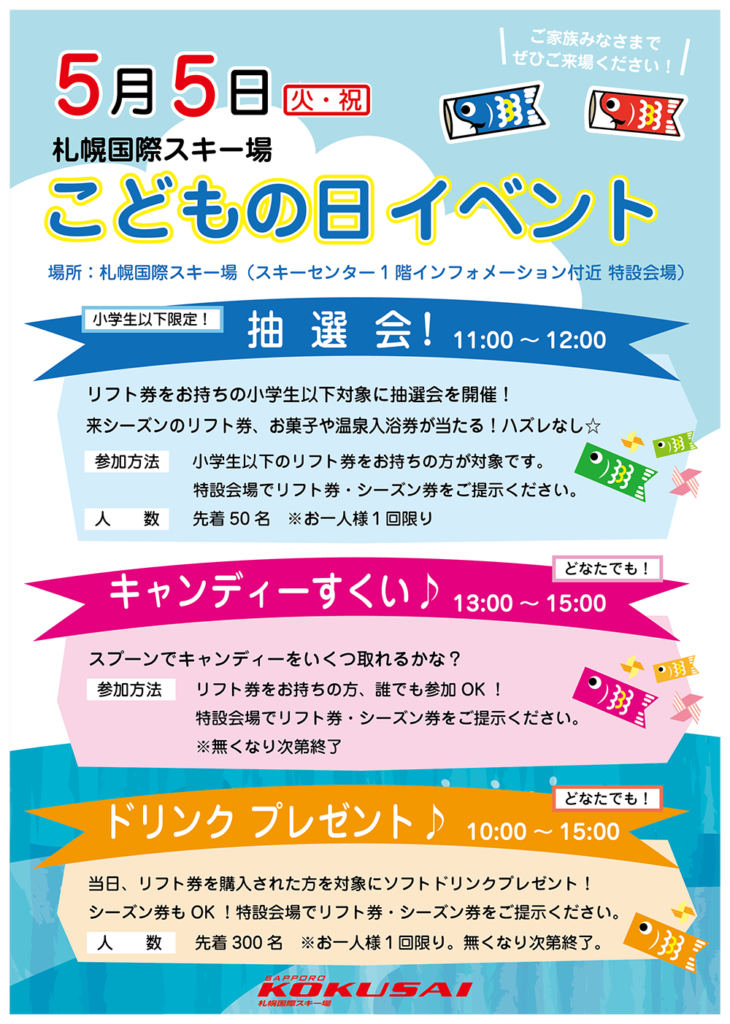 小学生以下のリフト券をお持ちの方が対象です。特設会場でリフト券・シーズン券をご提示ください。