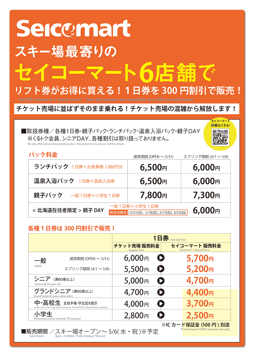 スキー場近郊のセイコーマート6店舗でリフト券販売!
