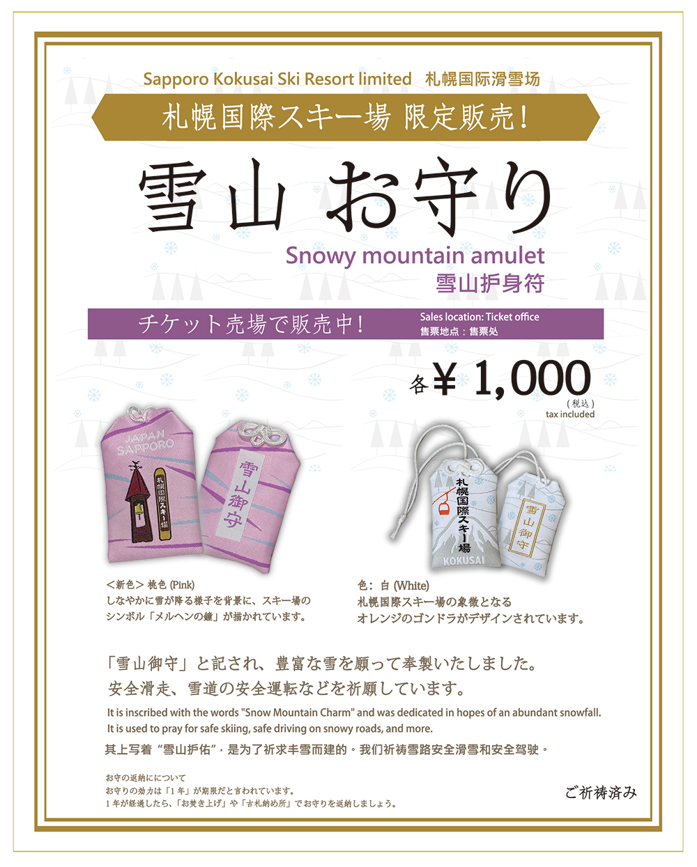 Sapporo Kokusai Ski Resort's limited-edition "Snow Mountain Amulet" is now on sale!